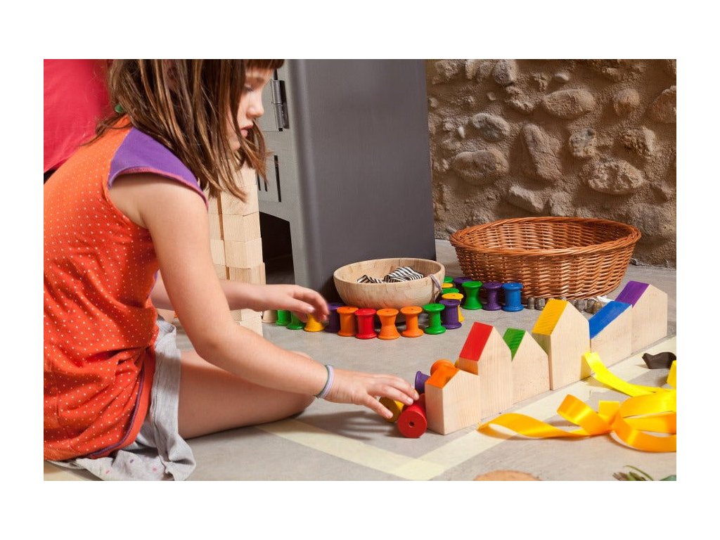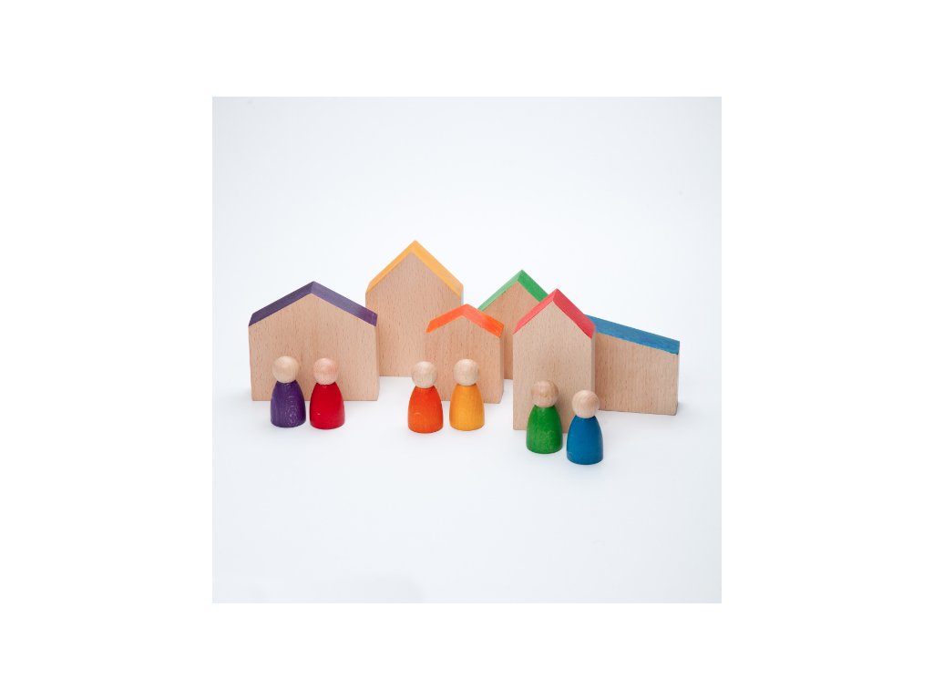 Nins s domečky lze použít jako symbolickou hru, k vytváření příběhů a malých světů. Vytváření příběhů, vymýšlení nových měst, městeček, ulic atd. Tyto domy, natřené barvami duhy, které jsou jednoduché a přirozené, dávají postavičkám Nins útulnou a barevnou čtvrť. Děti mohou vytvářet ty nejpřekvapivější malé světy a jejich příběhy s otevřeným koncem.